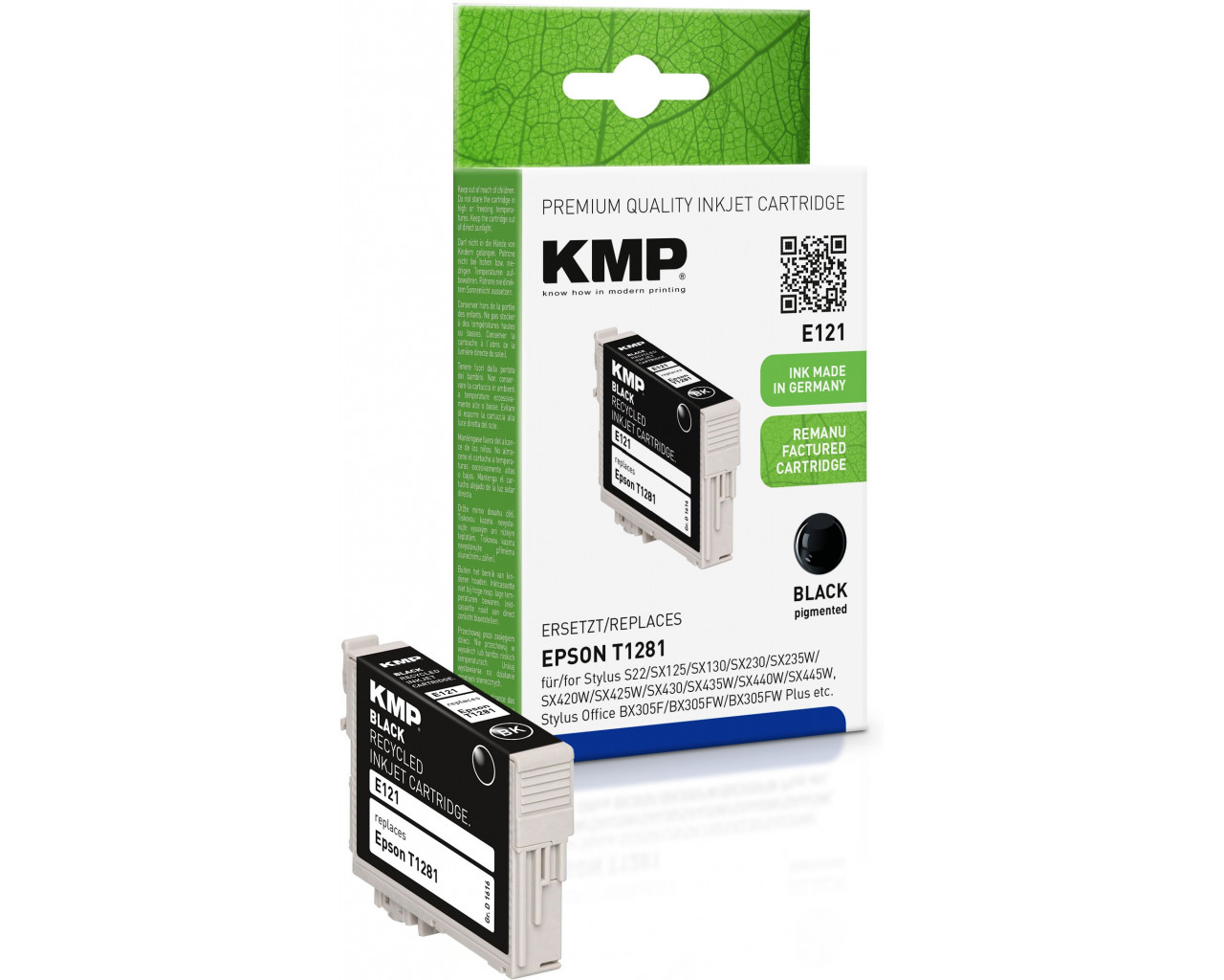Náplně byly testovány v časopise Stiftung Warentest (www.test.de - vydání 10/2012). Výsledné hodnocení náplně KMP: dobrý (2,2) - žádný z konkurentů se tolik nepřiblížil originálu jako cartridge KMP. V odolnosti proti setření, odolnosti proti vodě a odolnosti prosti světlu si cartridge KMP vedly velmi dobře a velmi dobře byla hodnocena tisková kvalita textu, grafiky i fotografií. Testovány byly také časopisem Computer-Magazin c't (vydání 11/2012) - „Nejlepší kvalitu inkoustu dodává společnost KMP. Je rovnocenný originálu a přináší ještě trochu lepší barevné snímky než inkoust Epson". Kompatibiní s originální inkoustovou cartridgí Epson s jablkem na obalu. |